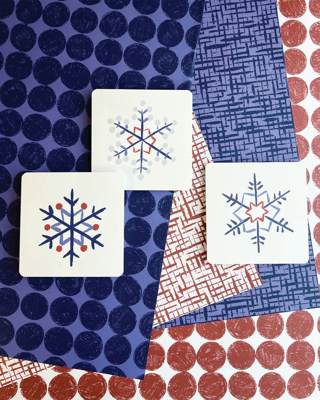 One set of our Winter Wonderland Little Note Cards (set includes six 4" x 4" flat note cards – two of each design shown). Note cards are blank on reverse.